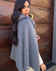 Mantella in lana con bottoni oro e collo removibile in volpe
