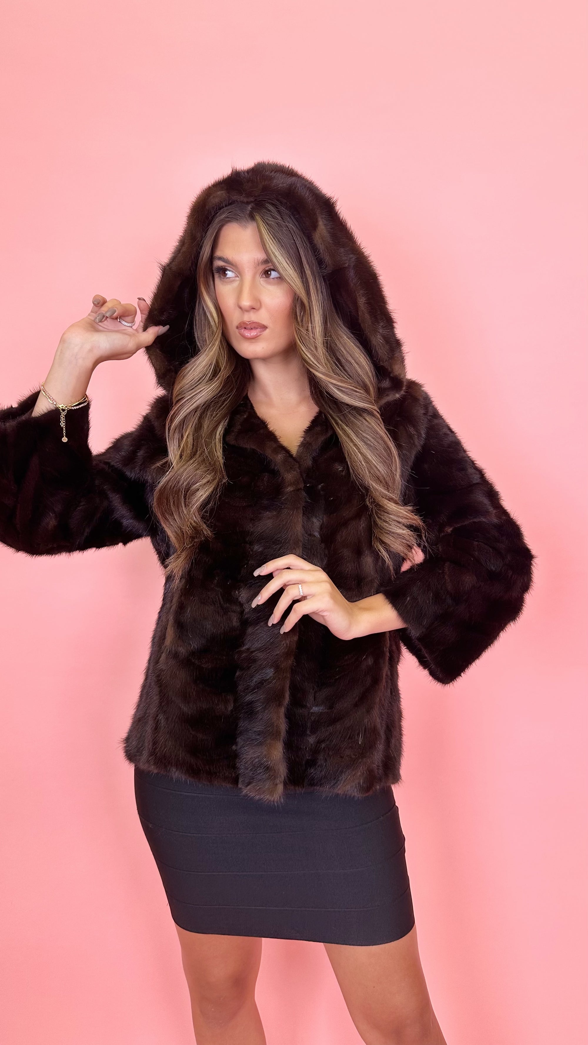 Visone con clip di chiusura e cappuccio